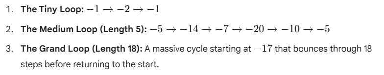 My program didn’t just find one loop. It visualized four distinct loops that exist in the integer universe: